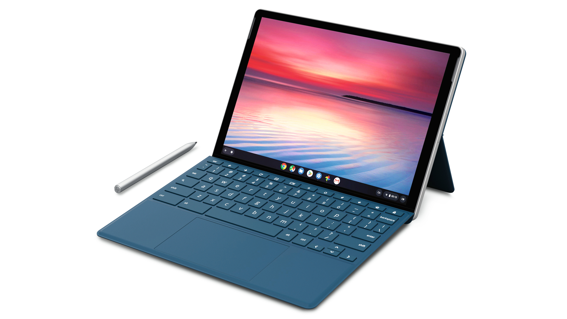 Das HP Chromebook X2 11 bietet die besonderen Funktionen des Betriebssystems Chrome OS in einem 2-in-1-Tablet. Hierzu zählen die Sprachsteuerung, das Surfen im Internet, das Ausführen von Android-Apps oder das Ansehen von Filmen. Das Chromebook verfügt über einen Kickstand, einen Stift und eine magnetisch befestigte Tastatur, um bequem zwischen Tablet-, Laptop- und Staffeleimodus zu wechseln. Seine Formgebung ist kompakt und wartet mit ansprechenden Details wie dem umlaufenden Metallrahmen auf.