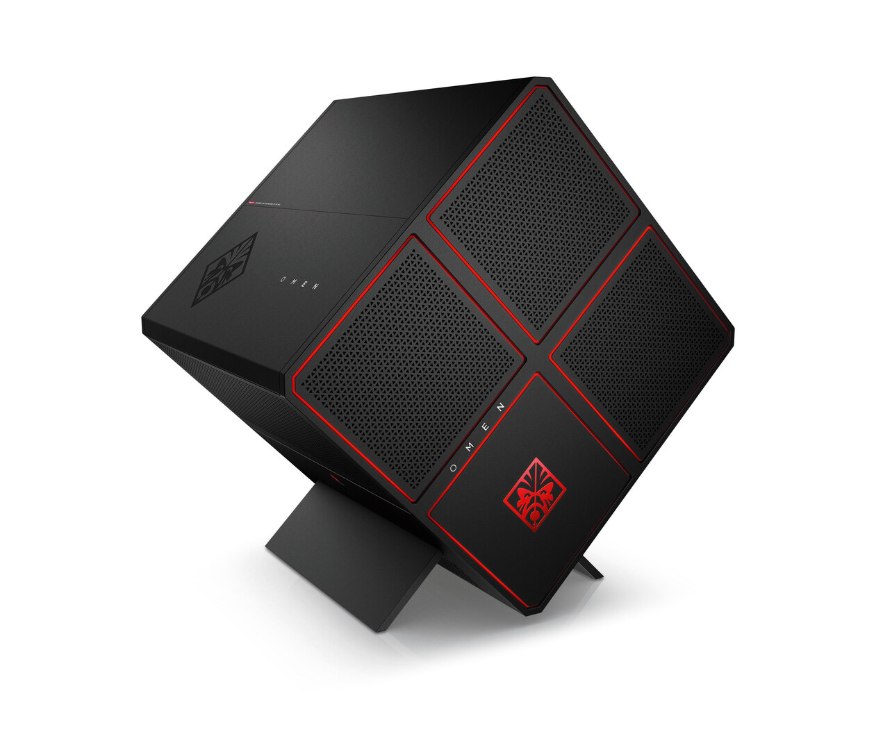 Zwei dezente Stützen verleihen dem HP Omen X Desktop das Aussehen eines Computers, der um 45 Grad gekippt wurde und auf einer Kante die Balance hält. Diese innovative Formgebung verbindet der Gaming-Computer mit funktionalen Vorteilen. So ist es sehr einfach, Konfigurationen vorzunehmen oder werkzeugfrei auf den Computer zuzugreifen, zudem unterstützt diese besondere Form die Kühlung. Neun Beleuchtungszonen wechseln die Farbtöne je nach Hardwarenutzung, Audiovorgaben oder nach individuellen Einstellungen.