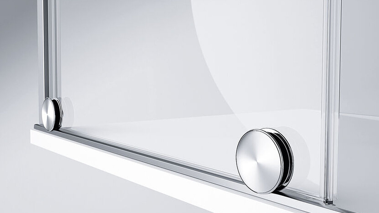 Die stilvolle Glasdusche gibt es wahlweise rahmenlos mit Wandwinkeln oder teilgerahmt mit Wandleiste. Scharniere mit innenflächenbündiger Verarbeitung folgen der klaren Linie und erleichtern die Reinigung. Vielfältige Lösungen geben Raum für Individualität und sind auch barrierefrei montierbar. Schwingtüren mit Festsegment berücksichtigen bauliche Situationen wie Mauervorsprünge oder Heizkörper. Die Scharniere mit 5 mm Hebesenkmechanismus sorgen für satten Türschluss. Filigrane, transparente Dichtleisten unterstützen das puristische Design, das durch pflegeleichtes Echtglas abgerundet wird.