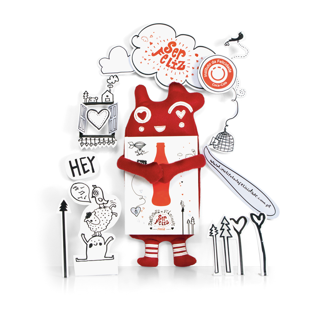 This book deals with the subject of happiness, on which the fictitious Happiness Institute has carried out a study commissioned by Coca-Cola. It examines the conditions and factors that influence human happiness. The book presents the results of the study using numerous graphics conceived to appeal to the readers’ emotions. In this context, happiness is also embodied as an attribute of the beverage brand. A soft toy designed to match the style of the graphics supplements the publication. It hugs the book, thus representing a tangible facet of happiness.