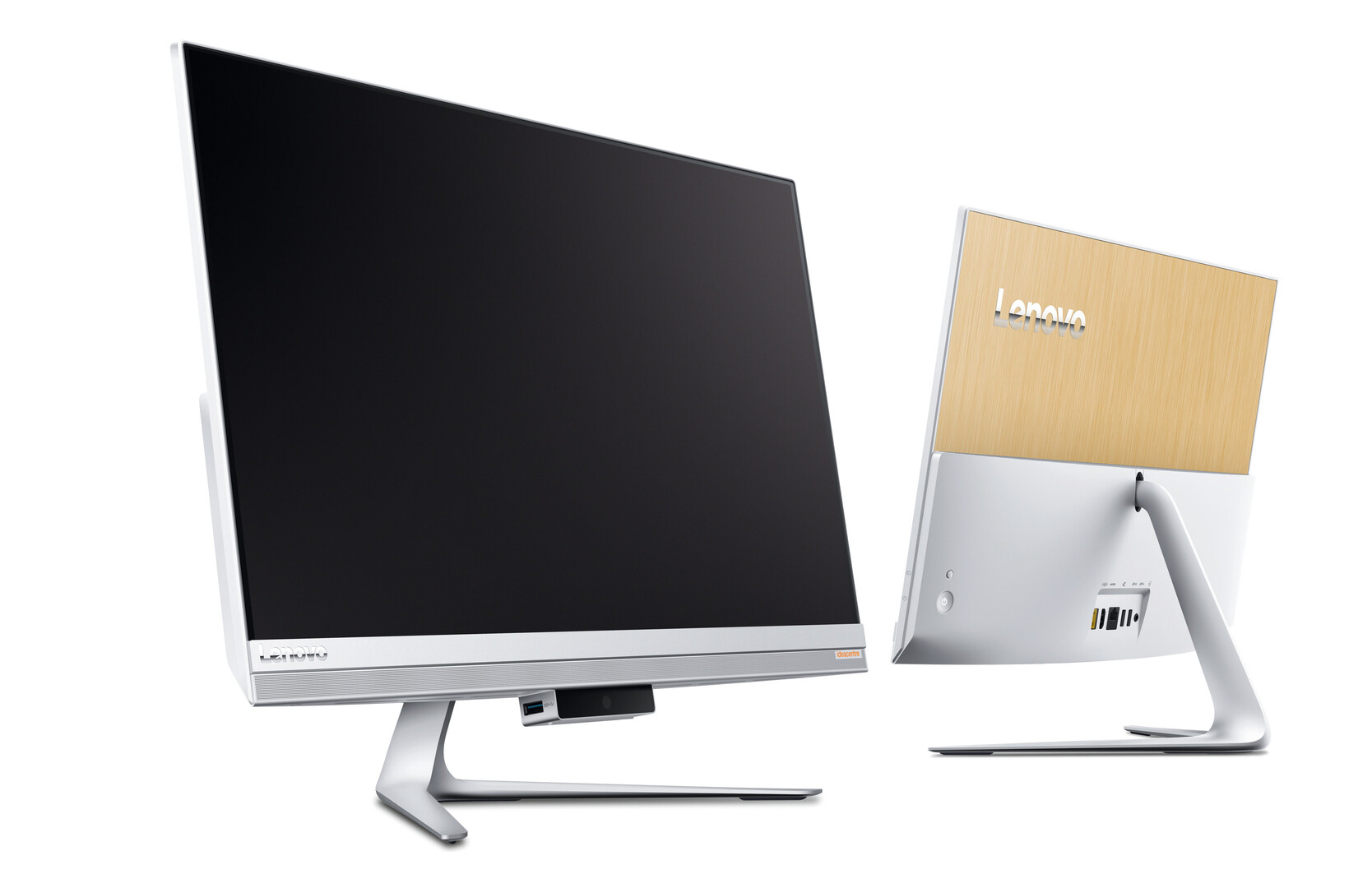Der All-in-one-PC ideacentre AIO 510s ist ein schlanker vollwertiger Computer. Er ist nur 7,5 mm dick und der Bildschirm erscheint mit seiner Einfassung von lediglich 3,5 mm fast rahmenlos. Durch seine schlanke Gestalt wirkt der PC unaufdringlich und nimmt nur wenig Platz auf dem Schreibtisch ein. An seiner Unterseite besitzt er ein verdecktes Panel mit Schnittstellen, das bei Bedarf ausgeklappt werden kann. Getragen wird der PC von einem elegant geformten, filigran wirkenden Standfuß.