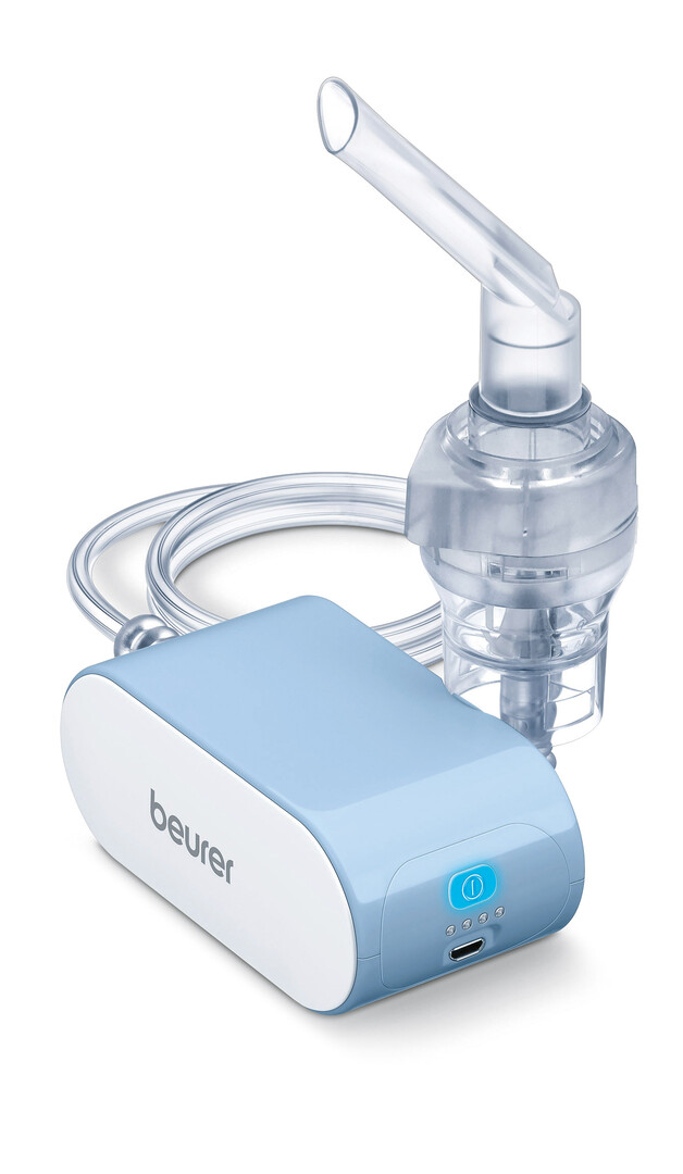Der IH 60 ist ein kleiner, leichter Inhalator, der flüsterleise arbeitet. Daher eignet er sich ideal für Kinder und auch für unterwegs. Das in dezentem Hellblau gehaltene Gerät ermöglicht mittels Kompressor-Drucklufttechnologie eine optimale Vernebelung selbst zähflüssiger Medikamente. Die hohe Vernebelungsleistung erlaubt eine kurze Inhalationszeit bei minimaler Betriebslautstärke. Im Gerät verbaut ist ein Lithium-Ionen-Akku, der über den mitgelieferten Adapter und das Mikro-USB-Kabel aufgeladen werden kann.