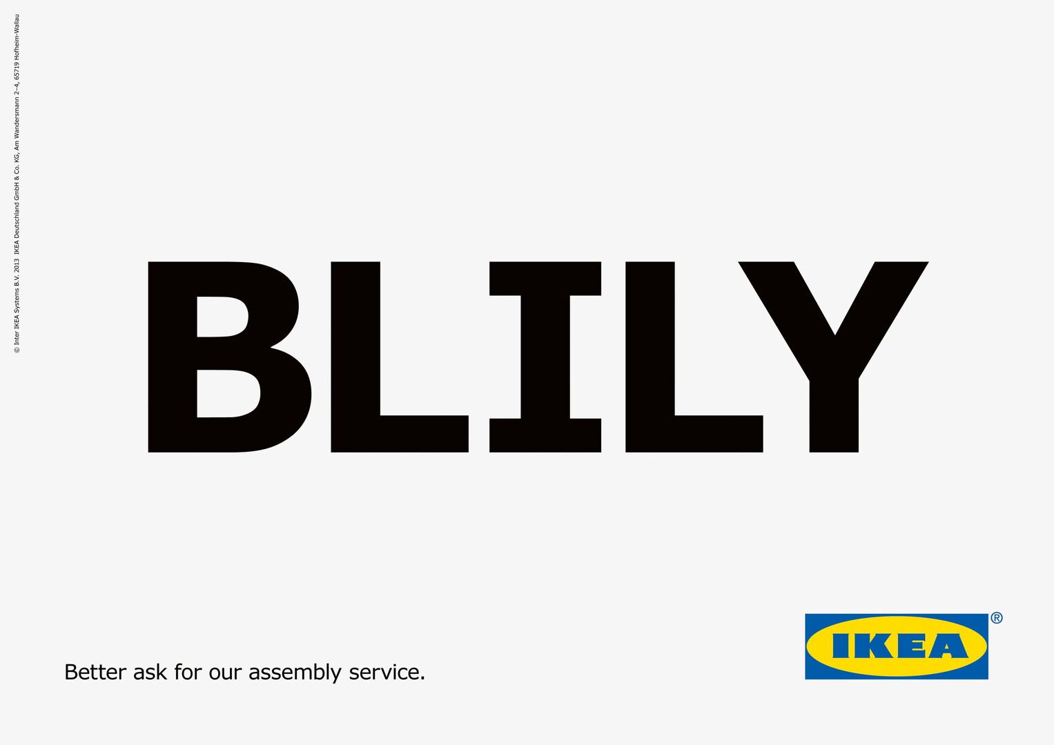 This charming national campaign aims to promote the idea that IKEA furniture is easy to assemble, not least because the company’s assembly service is waiting to assist in the background. It visualises the notion that everything can go wrong when just a few parts get confused. To illustrate this, the advertising makes use of scrambled letters and spelling mistakes. The motifs present the names of famous IKEA products but with incorrect spelling. Beholders immediately notice the typos and are thus reminded to contacting the assembly service.