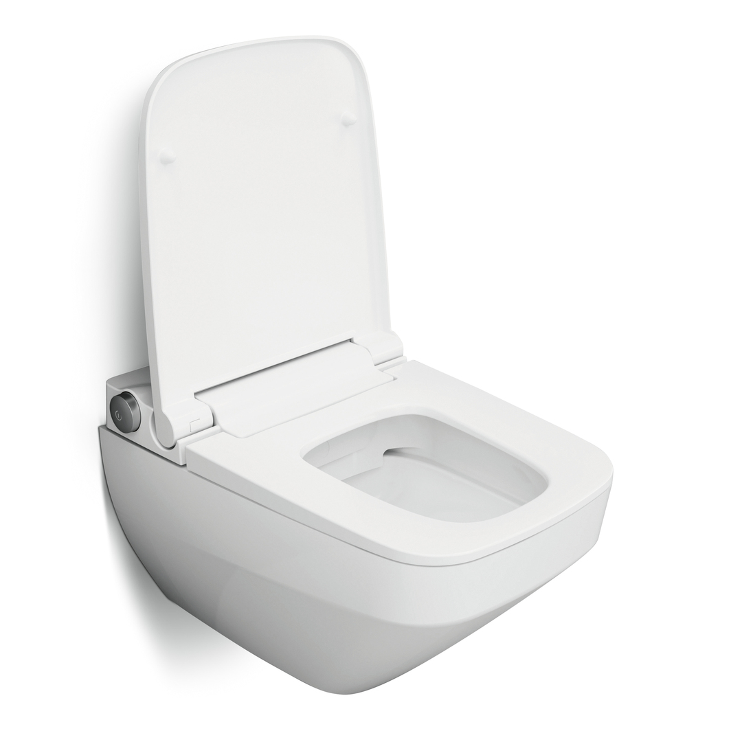 Eine klare Linienführung mit leicht abgerundeten Kanten charakterisiert das zeitlose Erscheinungsbild von Inspire V2.0. Düsenposition, Wassertemperatur und Duschstrahlintensität des wandmontierten Dusch-WCs sind per Fernbedienung sowie über den seitlich angebrachten Drehregler zu steuern. Die schlanke Sitzfläche verfügt über eine integrierte Vorwärmfunktion und wird aus Duroplast hergestellt. Dieses strapazierfähige, kratzbeständige Material sorgt für gute Reinigungs- und Hygieneeigenschaften.