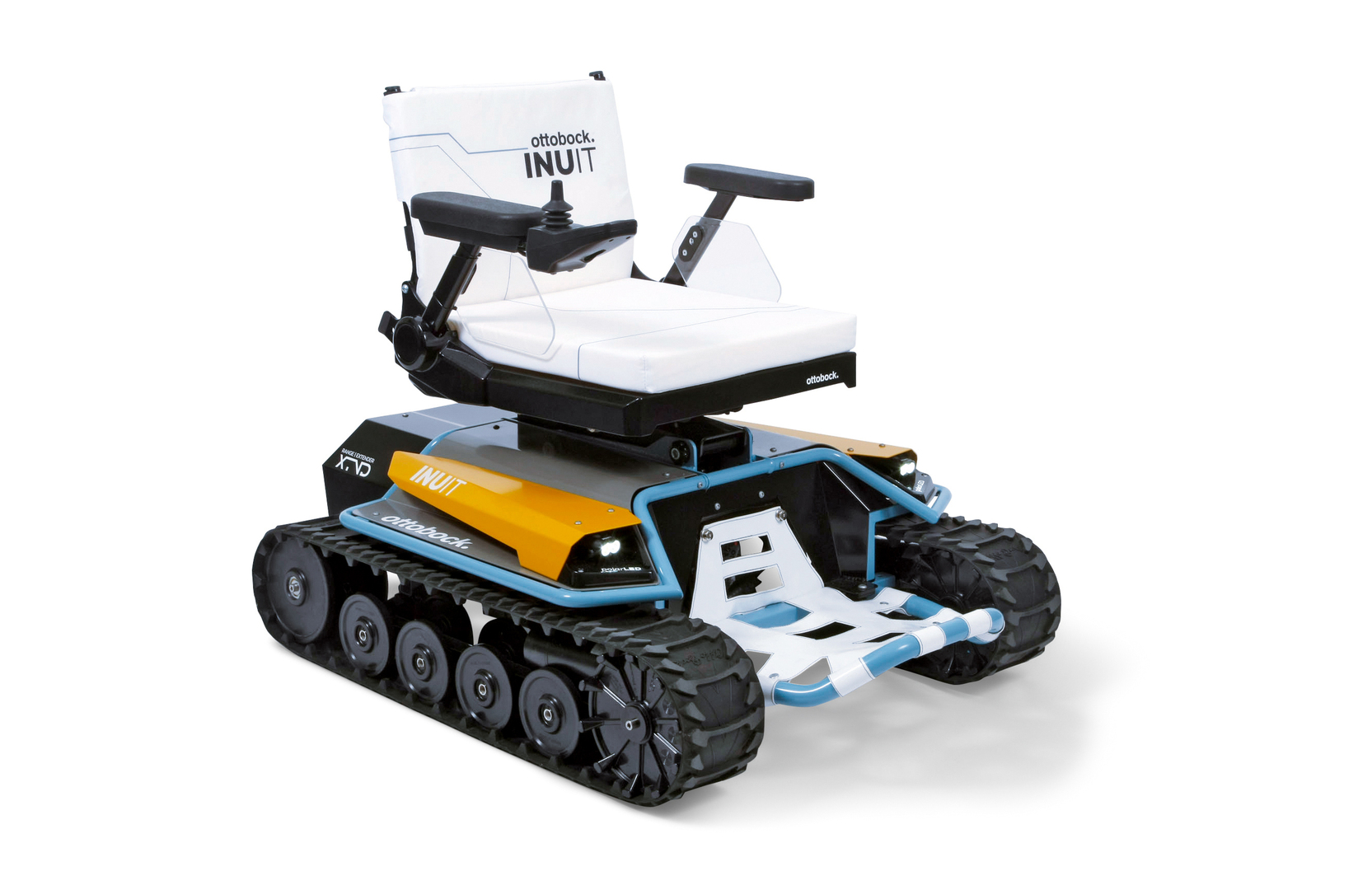 Der Inuit ist ein Kettenfahrzeug für Rollstuhlfahrer, das für schwieriges Gelände wie Sand oder Schnee geeignet ist. Eine seitliche elektrische Transferhilfe und eine Hubeinrichtung helfen beim Auf- und Absteigen. Der niedrige Schwerpunkt gewährleistet eine hohe Stabilität. Das „Polar Light“ auf LED-Basis ermöglicht es, im Dunkeln zu fahren. Stabile Verkleidungselemente schützen Fahrer und Fahrzeug.