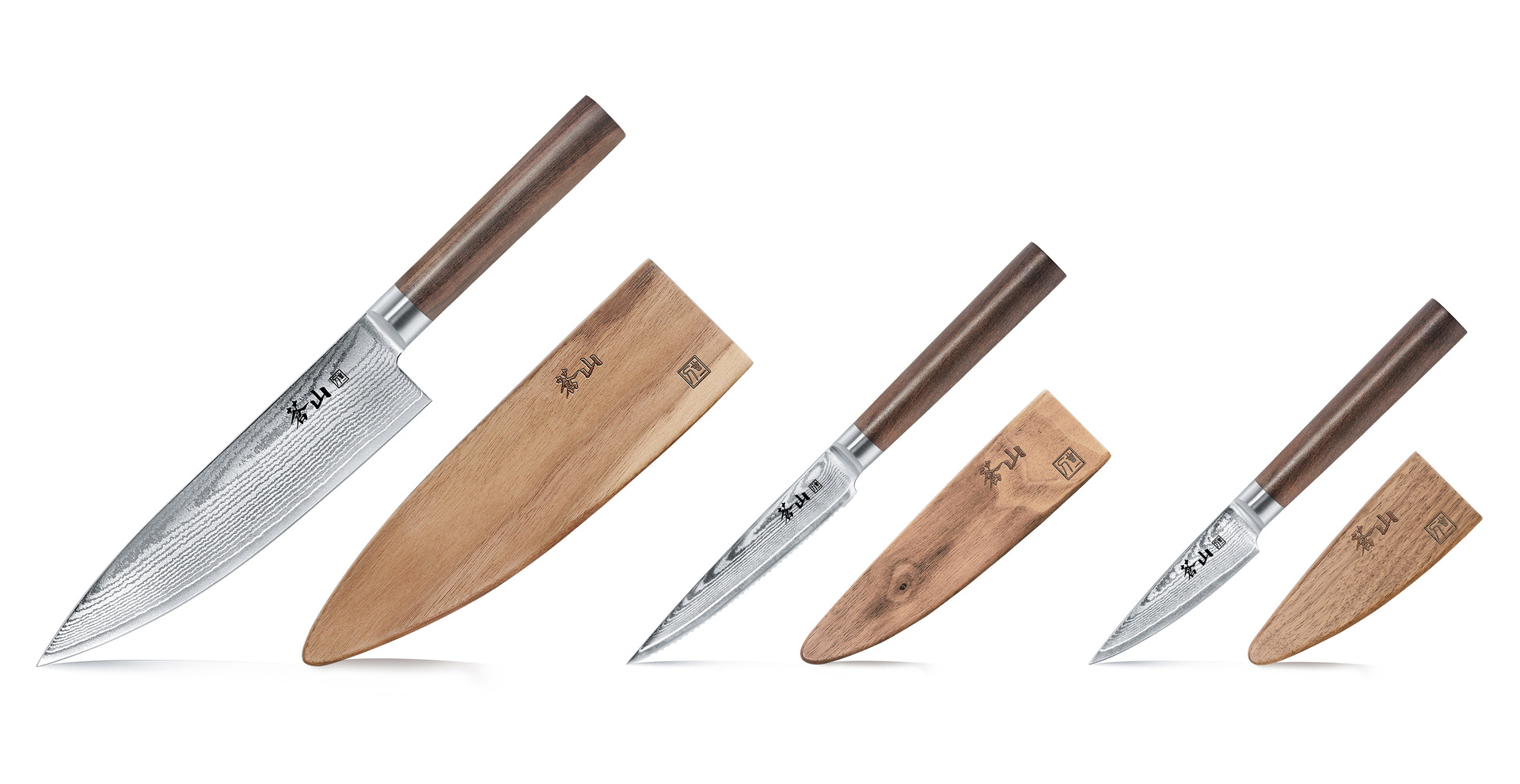 Eine ansprechend asiatische Ästhetik prägt dieses Küchenmesser-Set, wobei insbesondere der Klingenschliff die gehobene Qualität untermalt.