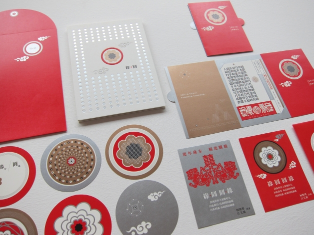 This distinctive visual identity was developed as part of a design project that conveys traditional Chinese wedding culture through contemporary communication media. The use of traditional Chinese wordplay aims to express harmony and unity. As a fundamental graphic design element, the circle emphasises – with diversified ornamentation – a harmoniously balanced overall presentation. This comprehensive project involves a diverse range of communication media, all of which feature a traditional colour palette of red, white and gold.
