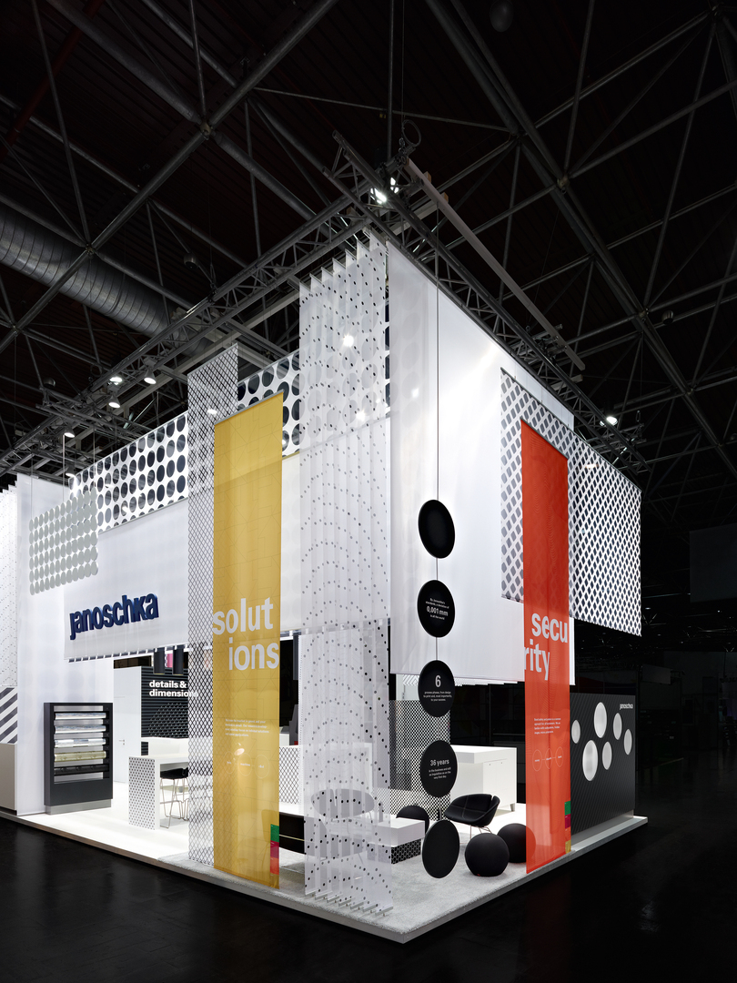The design of the trade fair stand by the janoschka company for drupa 2012 aimed to present a comprehensive spectrum of services and production competencies in the field of printing plates and reproduction. Special exhibits and communication areas convey the often quite abstract processes and services to the visitor in a lively and easy-to-understand manner. The stand design features a conscious play on extreme leaps in scale to make the world of printing-plate production and reproduction come to life for the visitor as an easily graspable, immersive experience.