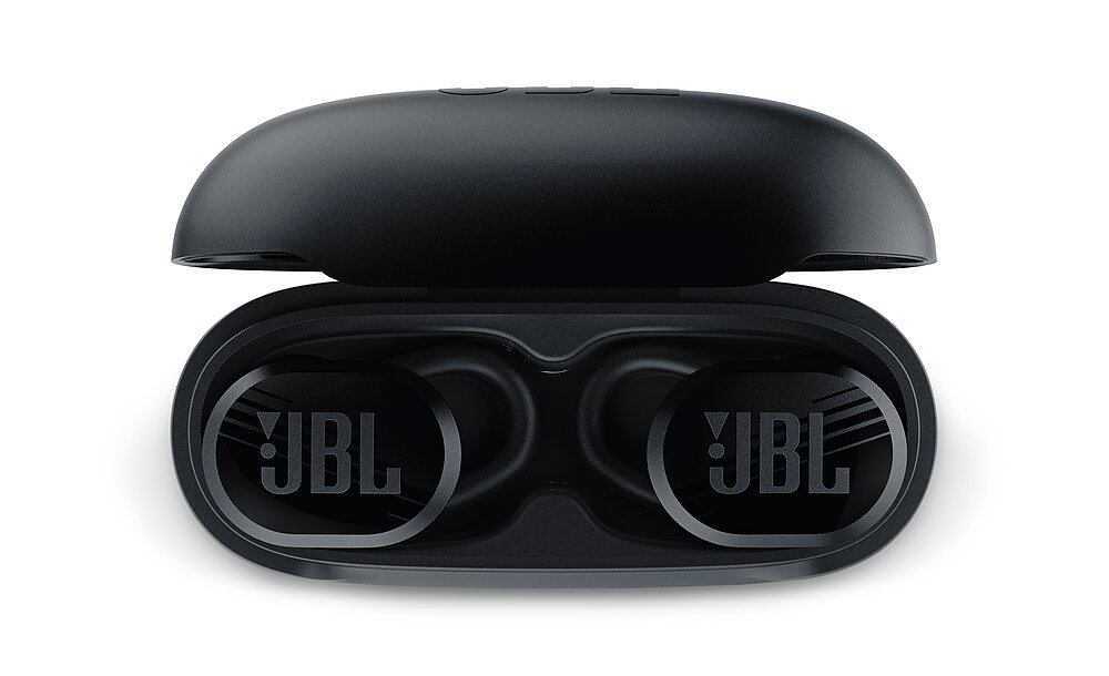 Der JBL Endurance Race TWS ist ein In-Ear-Kopfhörer für Benutzer mit einem aktiven Lebensstil. Er ist staub- und wasserdicht, einfach zu bedienen und verfügt über eine Akkulaufzeit von bis zu 30 Stunden. Das ergonomische Ohrpassstück mit Bügel vermeidet Druckstellen und gewährleistet ganztägigen Tragekomfort. Auch in seiner Gestaltung zeigt sich der Kopfhörer dynamisch, was vor allem seinen angeschrägten Kanten sowie den In-Mould-Grafiken an beiden Ohrstöpseln und an der Ladebox geschuldet ist.