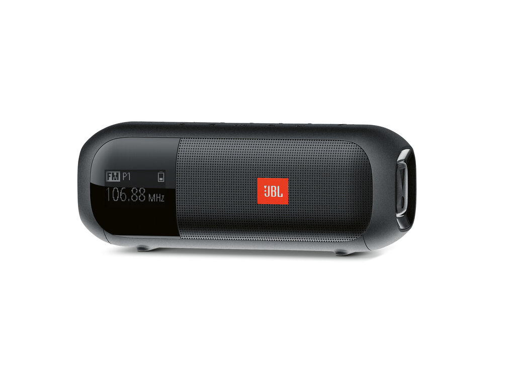 JBL Tuner 2 ist ein tragbarer Radiolautsprecher mit kristallklarem Sound, Bluetooth und eingebautem Akku. Er bietet ein kompaktes Lifestyle-Design und ein gut lesbares großes LCD-Display mit übersichtlichen Senderinformationen. Fünf Sender lassen sich definierten Tasten zuordnen, sodass die Lieblingsmusik schnell eingestellt ist. Dank des robusten, wasserdichten Gehäuses und des bis zu zwölf Stunden reichenden Akkus ist der Radio-Lautsprecher auch unterwegs immer einsatzbereit.
