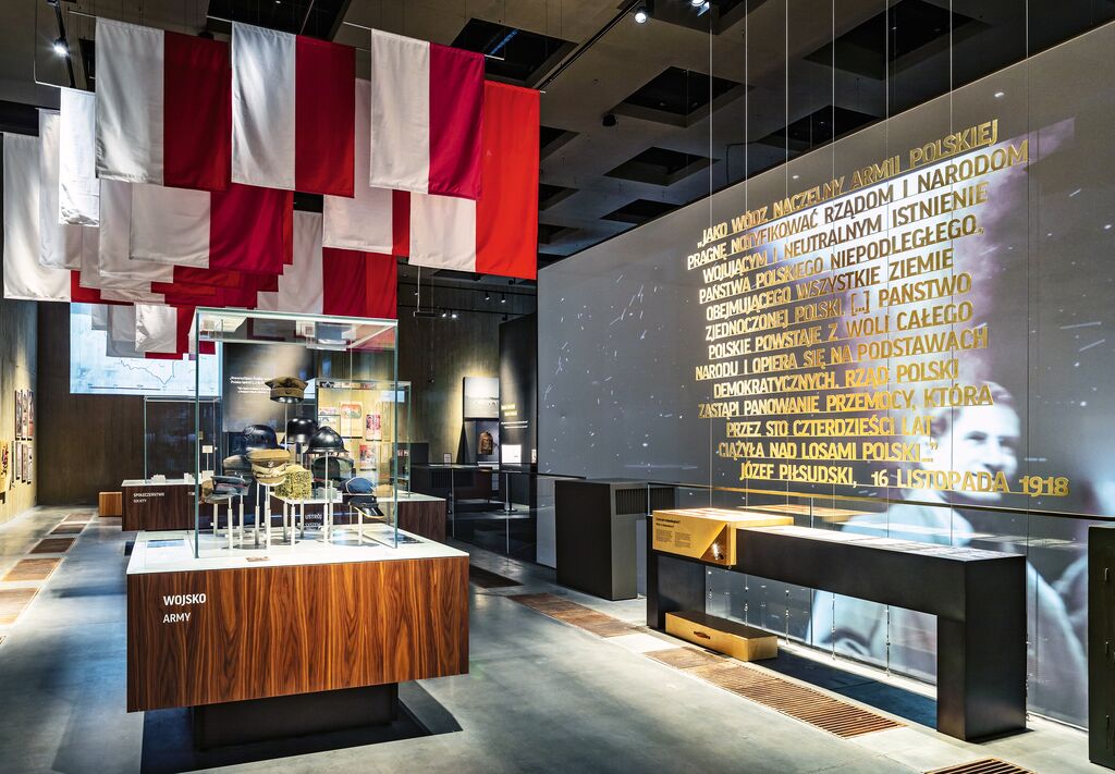 Dedicated to one of Poland's most recognised and celebrated heroes, this exhibition shows a design which creates a journey structured like the dramaturgy of an opera. By dividing the exhibition into scenes, the concept provides narrative storytelling, informative facts, and spaces for reflection and participation, which allows for different modes of engagement. The entire exhibition is organised symbolically between a lower and an upper level, creating a mezzanine connected by a ramp, ascending within a dramatic, visually open panoramic space which is defined by floor to ceiling video projections on transparent scrim.