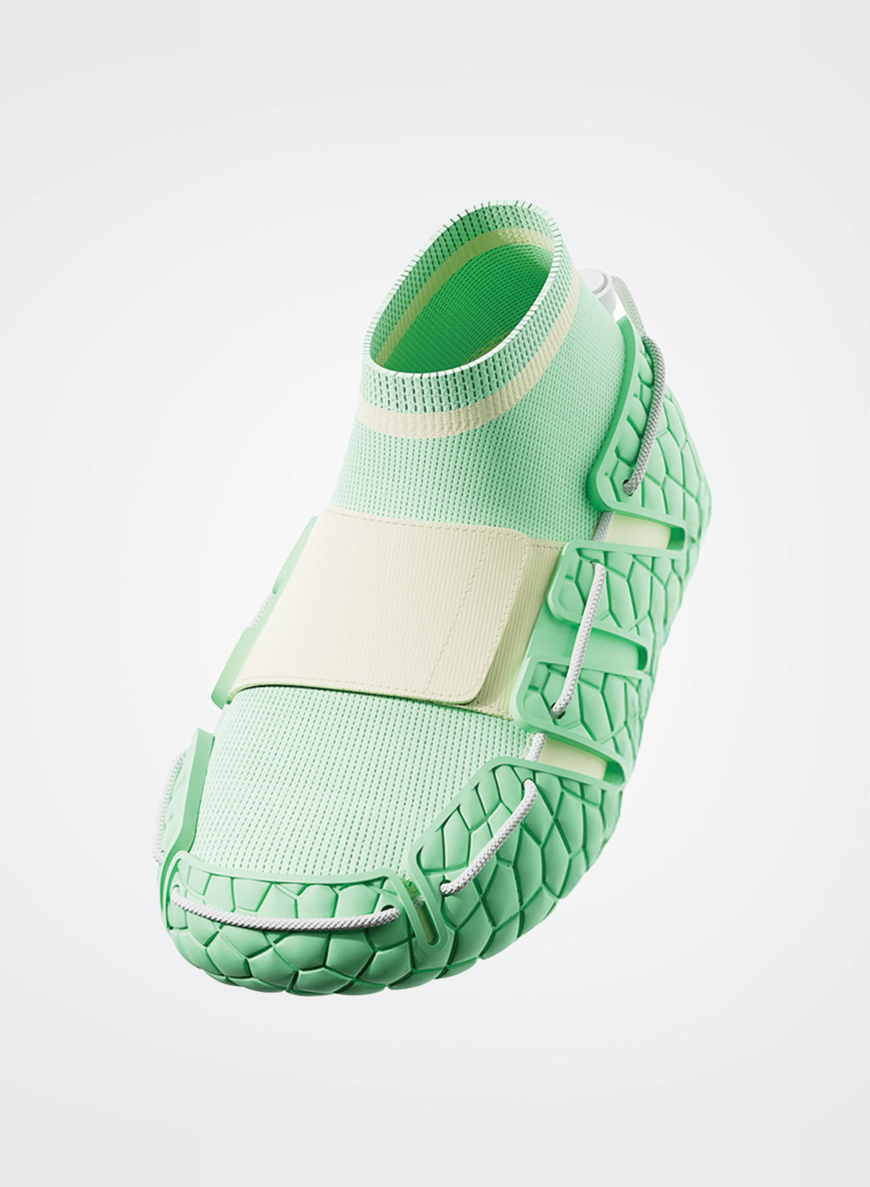 JuicyFlex is a walking shoe designed for toddlers aged 10 to 18 months. During this stage, children's feet change rapidly in shape, making it difficult for traditional footwear to maintain a proper fit over time. JuicyFlex proposes a dual-layer shoe construction that adapts to changes in foot length and width. The core innovation of the product lies in its adaptive expansion technology - a three-dimensional system that integrates lateral width adjustment, longitudinal length extension, and vertical flexible cushioning. This design enables the outsole to follow changes in foot shape throughout each developmental stage, providing stable support without compression or slippage. The inner sock-like layer is woven from natural materials such as lotus fibre, flax fibre, and soybean fibre. These materials are 100% non-toxic and safe, offering excellent moisture-wicking, antibacterial, and deodorising properties that effectively reduce heat and bacterial growth. The outer shoe uses sustainable bio-based materials, prioritising innovative and eco-friendly alternatives such as fruit leather and mycelium leather. Red Dot Award: Design Concept | Ready For Market | Babies & Children