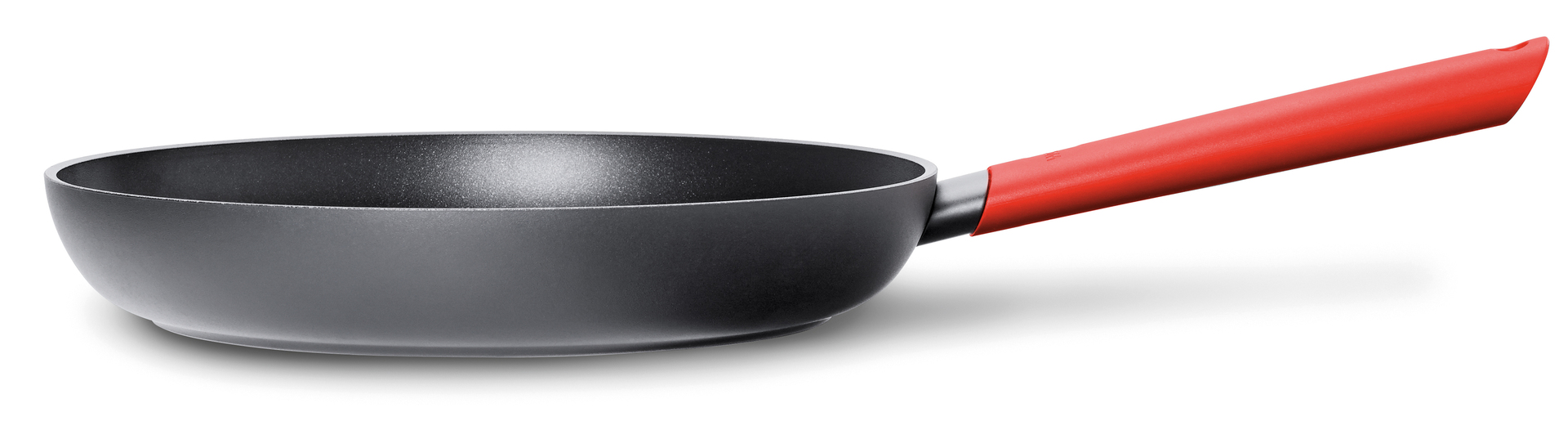 Just Cook ist eine gleichsam visuell ansprechende wie komfortable Produktlösung. Einen besonders dynamischen Akzent setzt der rote Pfannenstiel.