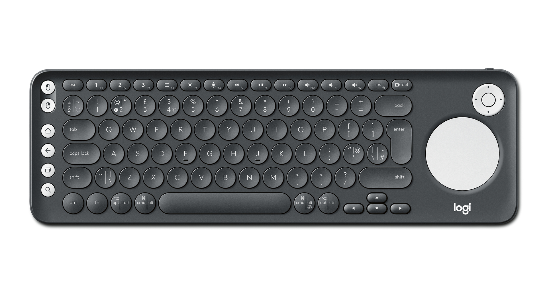 K600 TV ist eine vielseitige All-in-one-Tastatur, mit der sich die vielfältigen Funktionen von Smart-TVs nutzen lassen. Das vertraute Tastenlayout vereinfacht die komfortable Texteingabe und präzise Menü- und Cursorsteuerung, um leicht durch Menüs zu navigieren oder Websites anzuwählen. Als Merkmal besitzt die Tastatur ein großes Touchpad sowie ein D-Pad, das die Steuerung des Cursors wesentlich vereinfacht. Da sich die Tasten nahezu geräuschlos betätigen lassen, bleibt das Fernseherlebnis ungestört.