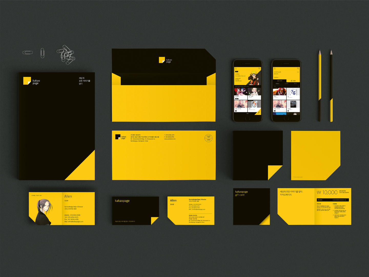 kakaopage is a content service platform based in South Korea, which provides extensive content, such as comics, general books and more, from diverse categories. Like readers who memorise their favourite pages by folding them over, the brand symbol looks like a dog-eared page on a square platform. In this way, the brand design wants to express that kakaopage has countless stories, from analogue to digital contents. By developing its own changeable key visuals, typography and icon, a refined brand identity was created. The design elements were applied to various touch points, online and offline, to provide a unique and coherent brand experience.