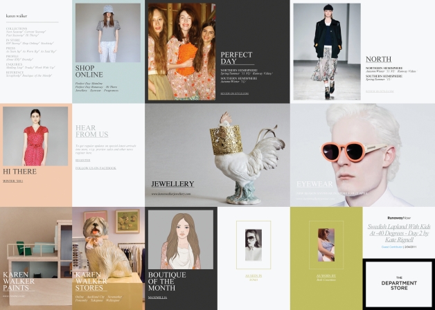 This website showcases current and past collections as well as diffusion lines of Karen Walker Jewellery, RunawayNow, Karen Walker Eyewear and Karen Walker Paints. The simple online publishing platform highlights backstage images from New York Fashion Week and snapshots of celebrities, and allows to post inspiration for each collection. It is completed with a simple collection viewer specifically built for the iPhone.