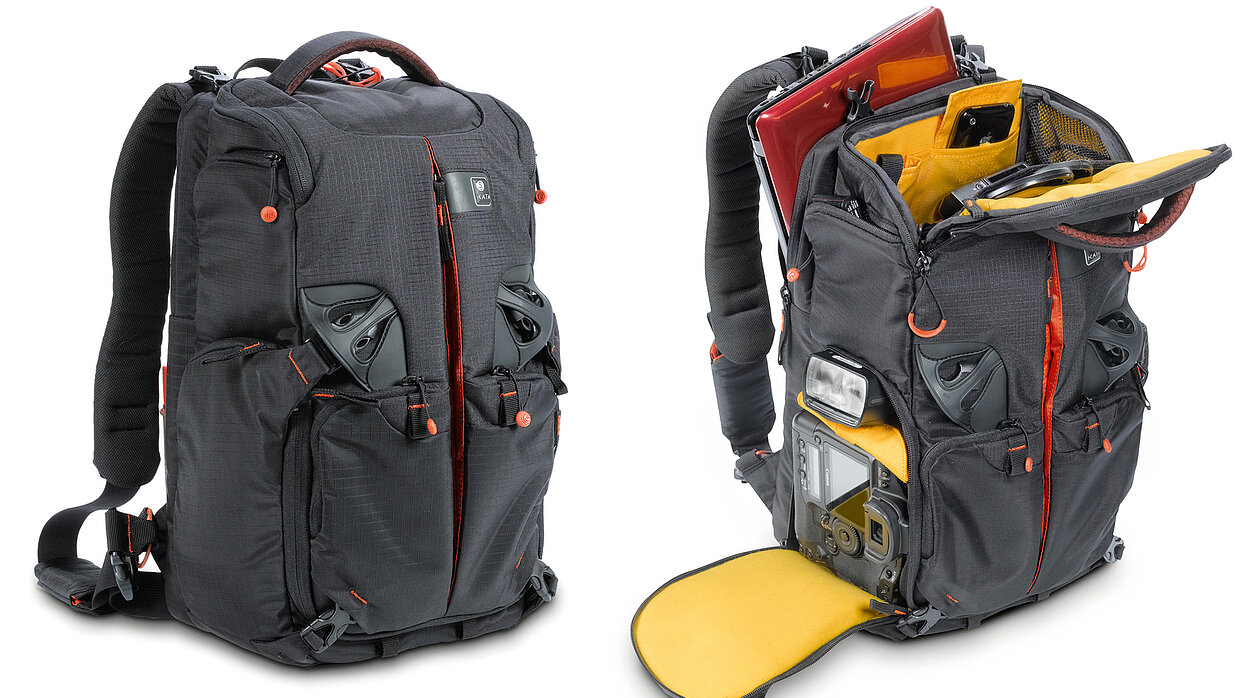 Der Rucksack Source-261 PL ist eine spezialisierte Tragelösung, um eine Video-DSLR-Kamera mit Zubehör zu verstauen. Er ist in drei Fächer unterteilt, in denen die Ausrüstung hierarchisch angeordnet werden kann. Die Kamera wird dabei in der Mitte platziert und über ein Stabilisierungssystem gesichert. Die Seitenfächer nehmen Zubehör wie Blitzaufsatz und Objektive auf, während an der Außenseite des Rucksacks ein Stativ an einer Schlaufe befestigt werden kann. Ein weiteres Fach bietet Platz für Laptops bis 17’’. So ergibt sich eine Tragelösung, die gleichermaßen ansprechend, komfortabel und funktional ist.
