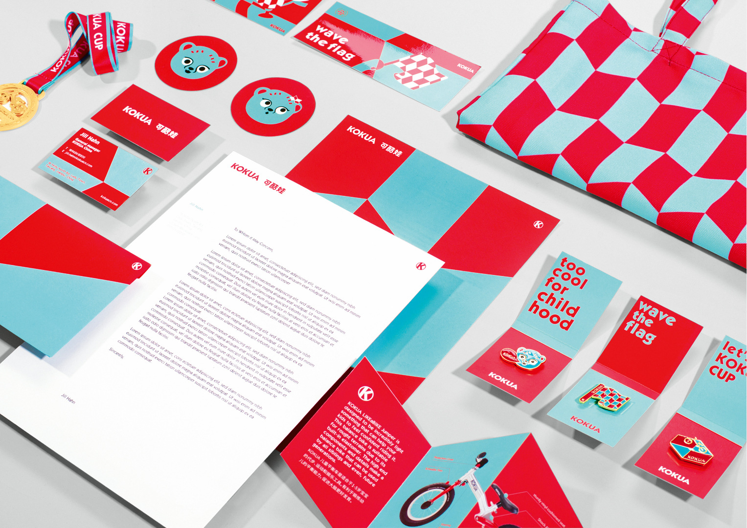 Kokua is a German brand providing premium balance bikes for kids. The brand came to China in late 2015 and introduced the Kokua Cup, an event around a racing competition. As sales and brand reputation gradually improved, a consistent yet flexible design system was needed to communicate the brand’s values. A Chinese logotype, which applies a similar style to the English logo, was developed for this purpose. Furthermore, the diamond-shaped brand motif in contrasting colours, which echoes the brand-specific tyre pattern, ensures a visual impact. In addition, a complete brand identity was developed, including a new colouring and fonts. The brand presence is supplemented by an illustration of a mascot inspired by a cheetah cub.