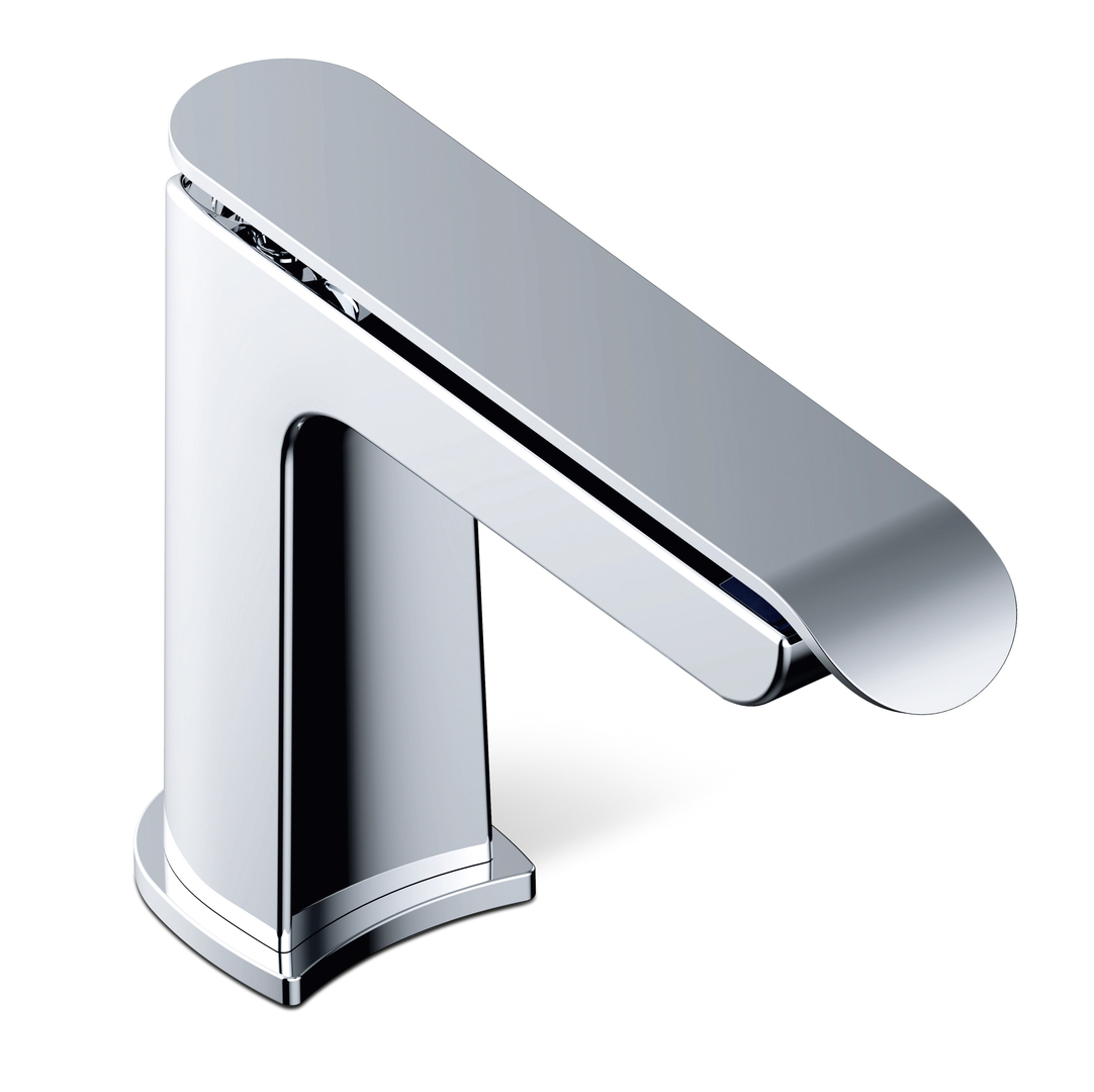 Glatt und ruhig wie ein Strom fließt der Einstellhebel dem Waschbecken entgegen. An einen Wasserfall erinnernd neigt er sich zum Becken hin. Die Wölbung des Hahns zieht sich den Wasserauslass entlang und fällt schließlich nach unten hin ab. Die Gestaltung bietet eine Lösung, die sich gut in runde wie ovale Waschbecken einfügt. Der serienmäßig integrierte Durchflussregler trägt dazu bei, den Wasserverbrauch zu senken.