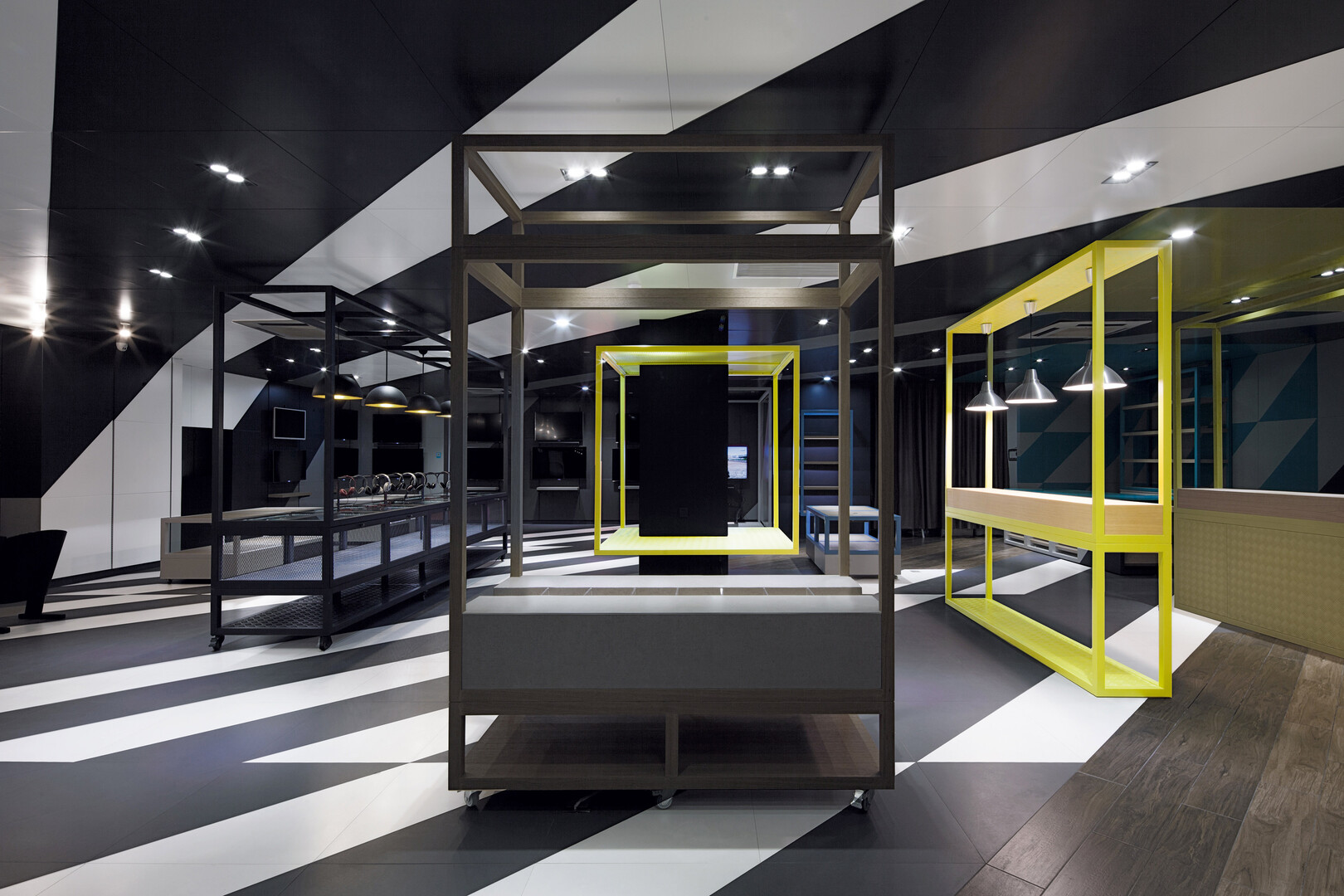 Visualising “Kuyu”, a lifestyle concept for the company TCL, the tech-savvy concept store, conveys the feel of stepping into a video game. The main idea for this offline retail store is based on an energetic and playful amusement park atmosphere combined with a relaxed home environment. Expanding from the original method of online consumption, the concept store aims to be a fun and informative space that is “a little bit nerdy” and welcomes people in to test out a range of appliances. Both online and offline purchasing is integrated into the design to help save time and connect the two business platforms.