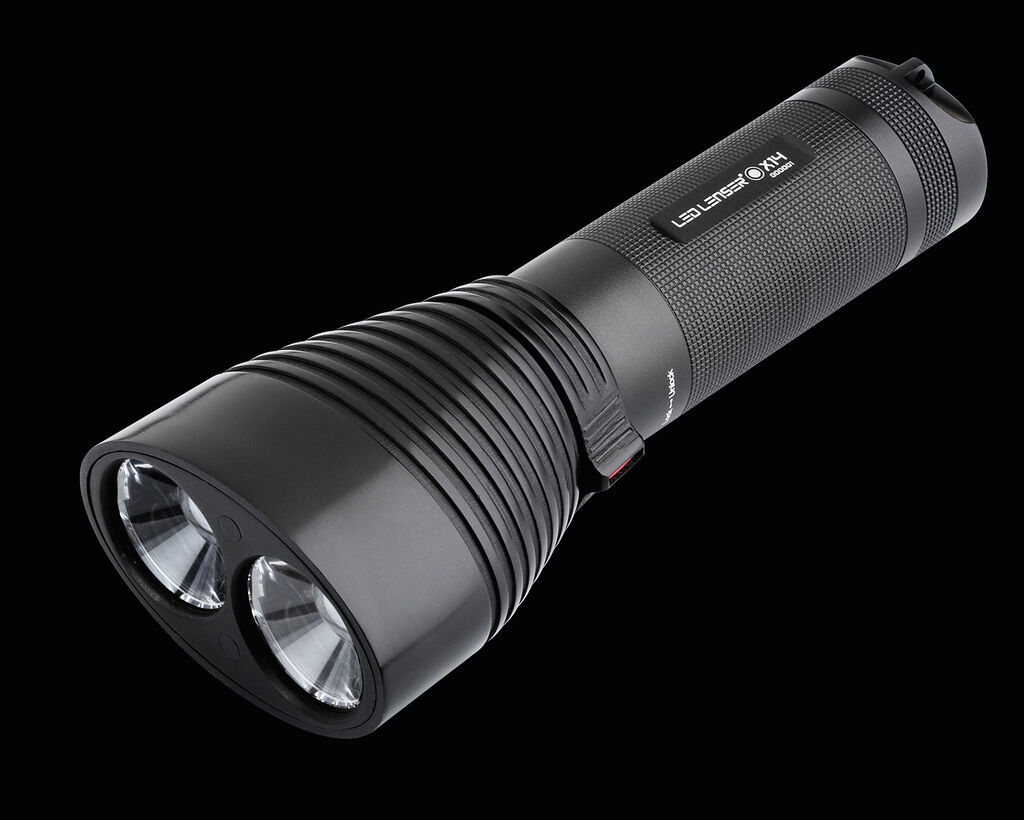 Ein ungewöhnlicher Lampenkopf mit zwei Lichtquellen ist das hervorstechendste Merkmal der LED LENSER X14. Die fokussierbare LED-Lampe aus der Xtreme-Serie sorgt für eine beeindruckende Lichtleistung. Bis zu 480 Lumen strahlen aus dem Kopf der Lampe und vereinigen sich zu einem fokussierbaren, kreisrunden Lichtkegel. Drei Lichtprogramme mit bis zu acht Lichtfunktionen (Smart Light Technology) ermöglichen die individuelle Konfiguration der Lampe. Durch die Lichtprogramme ist die Lampe für Sport und Hobby ebenso geeignet wie für Sicherheitsdienste oder für den taktischen Einsatz.