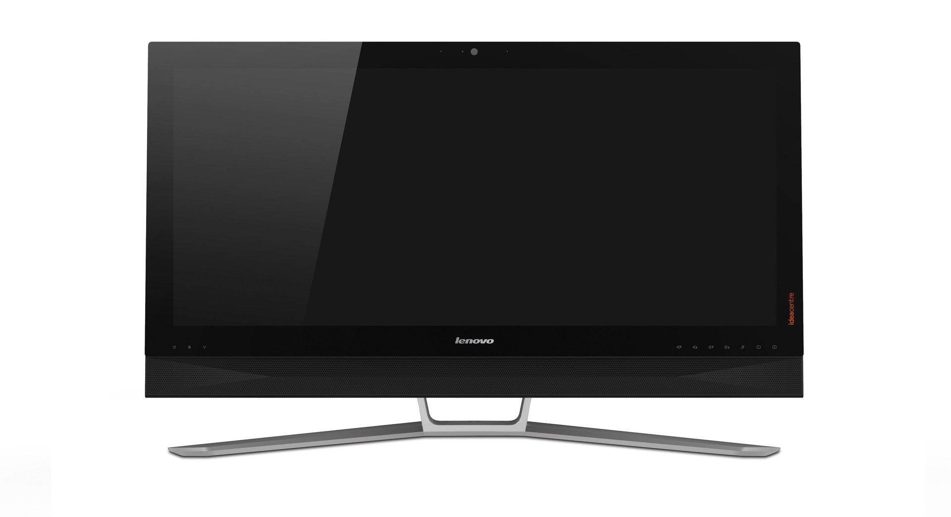Das IdeaCentre B750 ist ein All-in-one-PC mit zahlreichen Entertainment-Funktionen. Er besitzt einen 29”-Bildschirm und ein 2.1-Surround-Audiosystem. Der Bildschirm zeigt eine glatte Glasfront, die die Aufmerksamkeit auf das Bild lenkt. Die Lautsprecher sind unter einem feinen Metallgewebe versteckt, um den Gesamteindruck nicht zu stören. Der Computer ruht sicher auf einem Standfuß aus Aluminium und fügt sich gut in moderne Wohnräume ein.