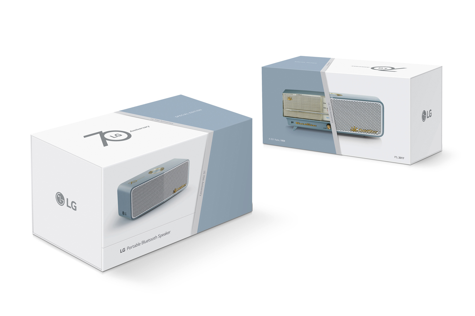 This is the packaging design for a portable speaker produced as a gift for employees on the occasion of the 70th anniversary of LG Group’s foundation. The design is based on the theme of “A connection between the past and the present”, incorporating the appearance of the A-501, the first radio produced in Korea. The sleeve not only seals the box but also enhances the aesthetic quality of the packaging by representing the heritage theme. The box is neatly embellished with trendy graphics on a white background. In order to convey the product’s quality, the brand logo and the 70th anniversary commemoration symbol are rendered in silver.