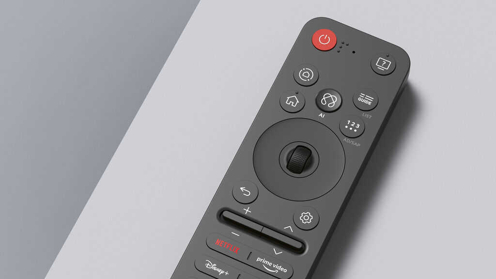 Die LG AI Magic Remote verbindet Übersichtlichkeit, Ergonomie und Funktionstiefe, wobei der Einsatz von KI das Nutzererlebnis bereichert.