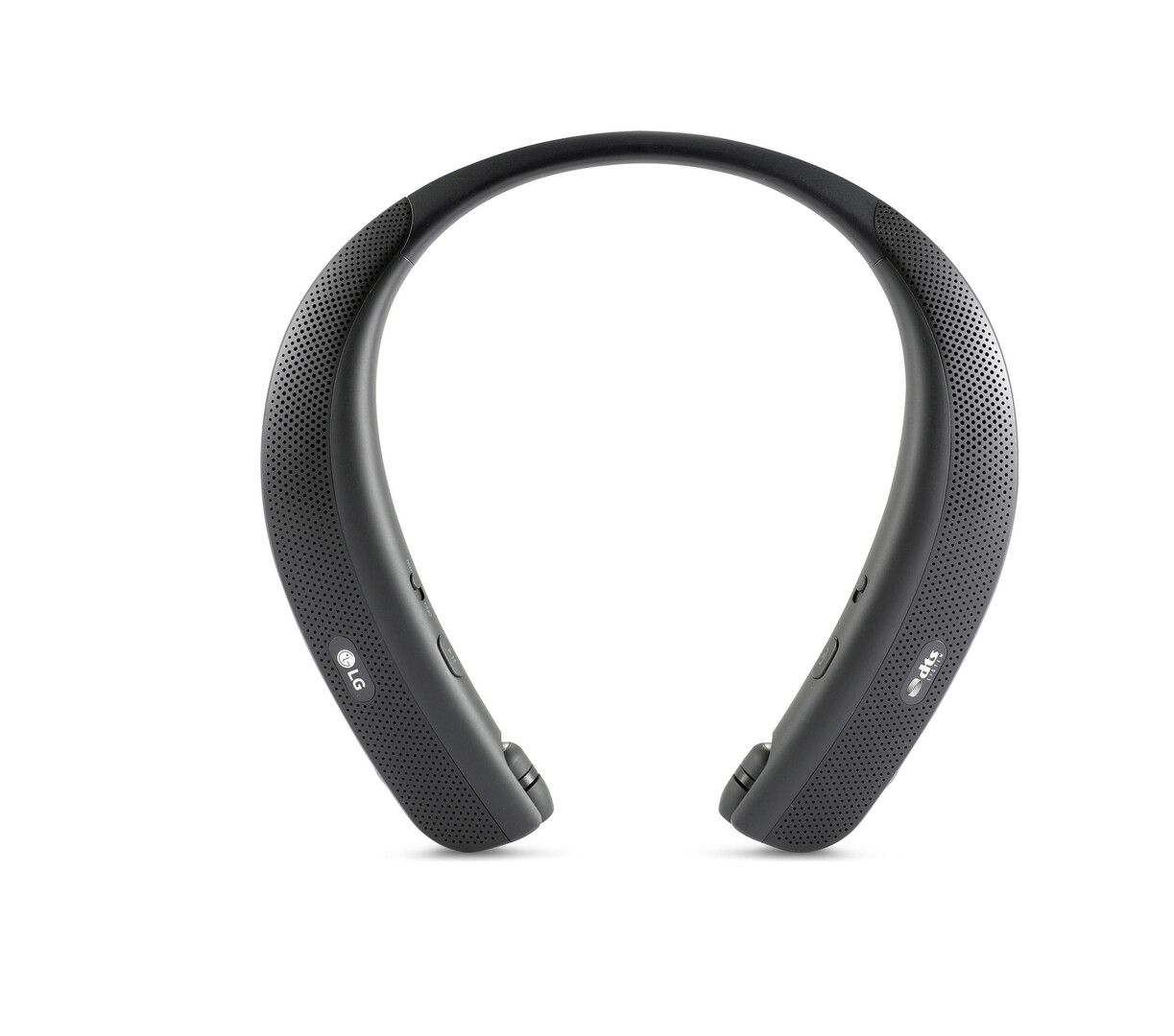 Das Modell LG HBS-W120 ist ein Lautsprecher, der sich wie ein Headset mit Nackenband tragen lässt, zusätzlich sind kabelgebundene Ohrstöpsel integriert. Die vier Treiber befinden sich im Nackenband und bringen den Klang unmittelbar in die Nähe des Hörers. Zwei Vollfrequenzlautsprecher finden sich im vorderen Bereich, zwei Vibrationslautsprecher im hinteren, sodass der Hörer Surround-Sound genießen kann. Die Lautstärke lässt sich mit einer Funktionstaste in Form eines Drehrädchens einfach einstellen.