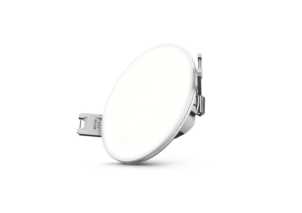 Um eine möglichst natürlich wirkende, breit gefächerte Beleuchtung ohne seitliche Schatten zu erreichen, zeigt dieses Downlight eine neuartige Konstruktion: Das flache Gehäuse wird von einem auffallend breiten Diffusor aus Acrylglas bis über die Kanten abgedeckt. Im Zusammenwirken mit fünf gewölbten Linsen vergrößert dieser Diffusor den Abstrahlwinkel des Lichts auf 99 Prozent. Somit ist die beleuchtete Fläche entsprechend größer als bei herkömmlichen Downlights.