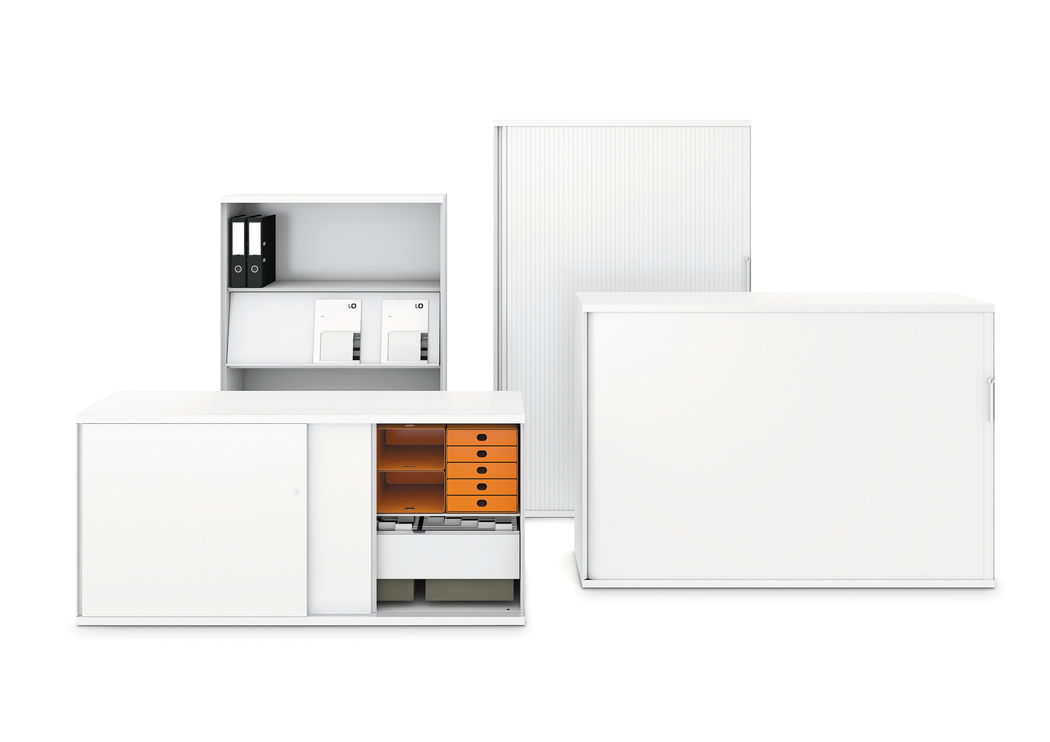 Das streng reduziert gestaltete Stauraumsystem überzeugt durch seine hohe Flexibilität, mit der es sich immer wieder an sich verändernde Gegebenheiten anpassen lässt, sowie durch die Qualität seiner Fertigung und Materialien.