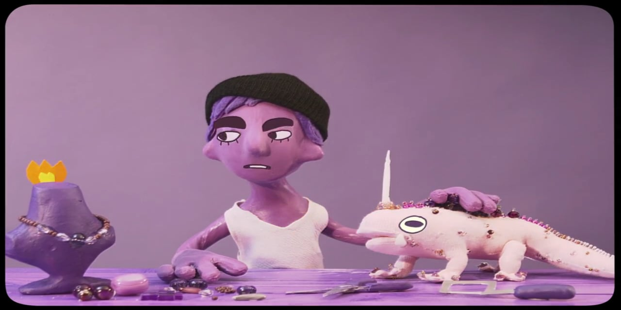 “Lorem Ipsum”, a term for a wildcard in graphic design, is a short film which combines stop-motion and 2D animation. It is centred on the verbal statements of four art students who talk about their various creative activities. They explore the question of what the difficulties in creating art are and why they do it despite great efforts. The students in the film are visualised in the form of silicone dolls. Each one has a companion, for example a fantasy creature, made from needle felt, which were inspired by commercials for medical products, especially the way they depict diseases as creatures.