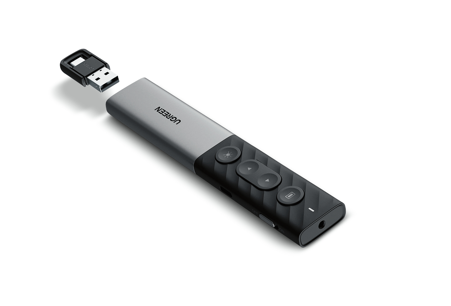 Kabellose Presenter mit Laserpointer sind bei Präsentationen ein unverzichtbares Hilfsmittel. Der LP386 ist ergonomisch gestaltet, sodass sich der Benutzer ganz auf seine Präsentation konzentrieren kann. Die Bedienknöpfe befinden sich in einem farblich akzentuierten Bereich mit Rillenstruktur, die unempfindlich gegen Fingerabdrücke ist. Der Empfänger eignet sich für USB-A- oder USB-C-Geräte und wird per Magnet am Presenter befestigt.