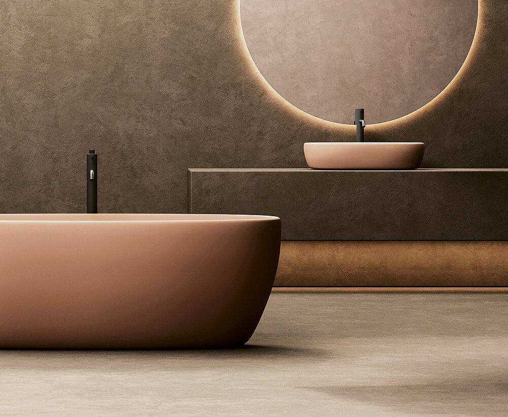 Die Sanitärkeramikserie Luce besteht aus einem Aufsatzwaschbecken und einer frei stehenden Badewanne. Charakteristisch für das Konzept der Sanitärobjekte ist ein vertiefter Boden, der einen beinahe schwebenden Eindruck vermittelt. Die Jury lobte besonders diese Leichtigkeit des Form und die durchdachten Proportionen der Badewanne, die bei einem vergleichsweise geringen Platzbedarf von nur 170 cm sogar zwei Personen komfortabel Raum bietet. Die seidig-matte Oberfläche des S-Stone-Kunststeins und die zarten Naturtöne unterstreichen die Eleganz der Objekte, die auf Kundenwunsch auch in jeder RAL-Farbe erhältlich sind.