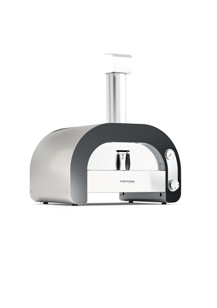 Maestro ist ein kompakter Pizzaofen für den Außenbereich, der leicht zu transportieren ist und an eine Gasflasche angeschlossen wird. Seine geschwungene Kontur erinnert an traditionelle Holzöfen und begünstigt die Luftzirkulation im Ofen. Auf prägnante Weise umrahmt ein schwarzer Bogen die Ofentür und mündet in seitliche Standfüße. Auch die Benutzeroberfläche folgt der Wölbung der Gerätefront. Um eine effektive Wärmeverteilung zu gewährleisten und den Gasverbrauch zu reduzieren, befindet sich der Brenner am Boden des Gasofens.