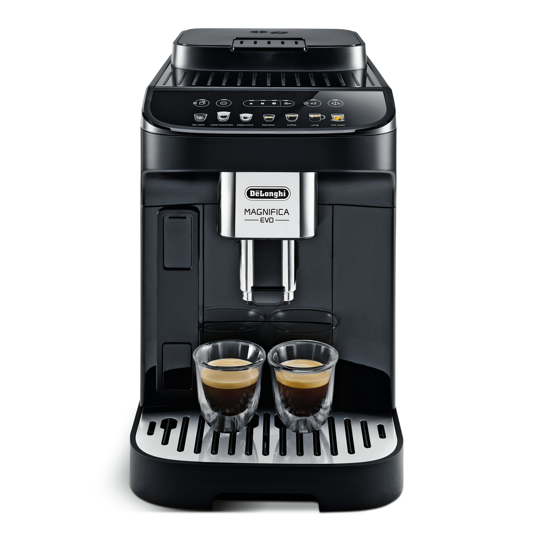 Die Magnifica EVO wurde entwickelt, um den Einstieg in die Welt der Kaffeevollautomaten zu erleichtern. Das Produkt zeichnet sich durch einen schwarzen Korpus aus, der ein elegantes und zugleich schnittiges Erscheinungsbild hinterlässt. Das benutzerfreundliche Bedienfeld mit Soft-Touch-Display und Farbsymbolen bietet eine vielseitige Auswahl an Kaffeespezialitäten. Vorinstallierte One-Touch-Rezepte sowie das automatische LatteCrema Cool- und LatteCrema Hot-Milchsystem unterstreichen die einfache Handhabung.