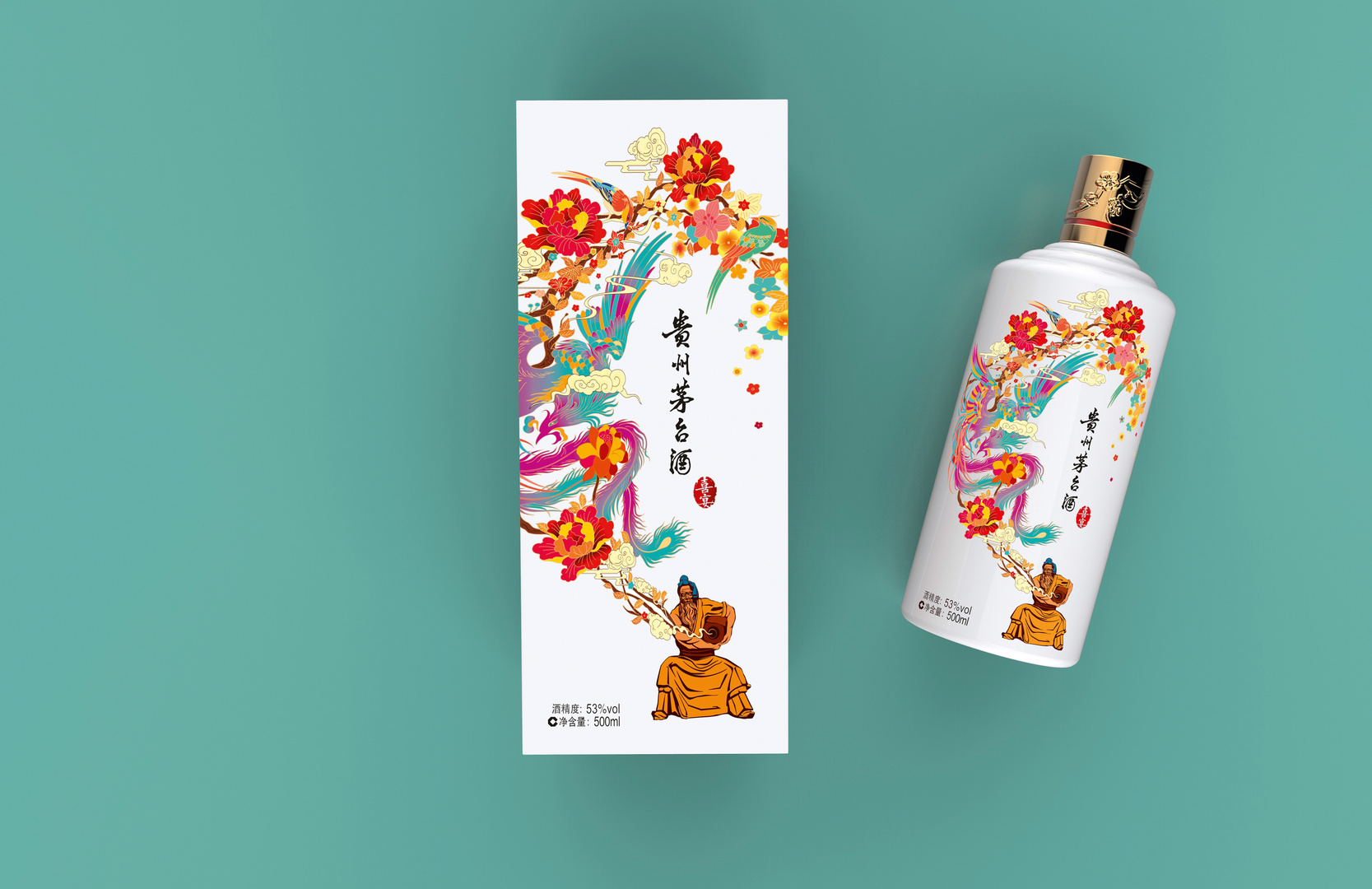 This artistic packaging highlights the premium quality of this rice wine, which is well known in China. Its design concept shares the aesthetics of traditional Chinese culture and makes use of familiar Chinese elements in order to express its deep cultural connection. The traditional elements incorporated in the design include the lucky magpie, the phoenix (king of birds), the Acacia confusa tree, auspicious clouds and peonies. The detailed and colourful illustrations against a white background express vitality and vibrancy, a theme that runs through the ancient legends of China.