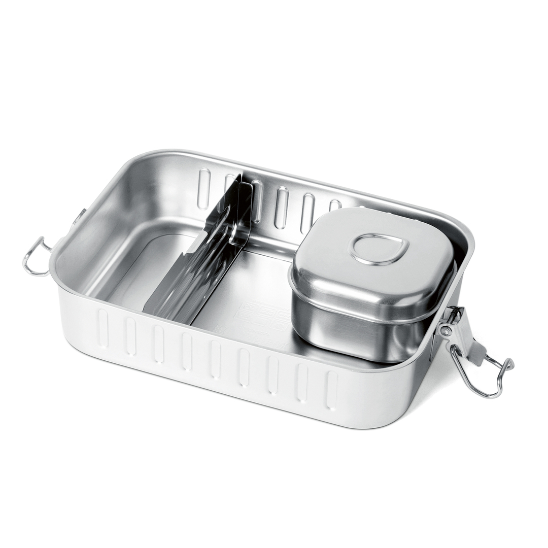 "Marmita" lautet der portugiesische Begriff für Lunchbox und auch bei der Formgebung der gleichnamigen Dose ließen sich die Gestalter von der Ästhetik eines landestypischen Produkts – einer Sardinenbüchse – inspirieren. Aus hygienischem Edelstahl gefertigt, bietet das Set mit einem Fassungsvermögen von 1 Liter eine flexible Schale, eine kleine Snack-Box sowie einen Saucenbehälter. Die Box mit Schnappverschlüssen ist auslaufsicher und dank ihrer Variabilität eine nachhaltige Alternative zu Einwegverpackungen.