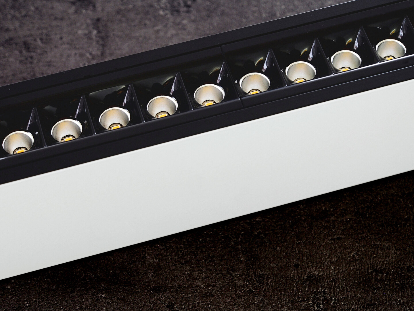 Mars ist eine lineare Lichtlösung zur Allgemeinbeleuchtung, die als Anbau- und Pendelleuchte zur Verfügung steht. Ausgestattet mit einer 65- oder 25-Grad-Reflektor-Optik bietet die LED-Leuchten-serie bis zu 140 Lumen pro Watt bei einem Farbwiedergabeindex von über 85. Ihr weiß gepulvertes Aluminiumprofil bildet im Zusammenspiel mit dem schwarzen Blendschutz einen attraktiven Kontrast. Die schwarze Blendungsbegrenzung ermöglicht einen UGR-Wert von unter 13 und liefert ein angenehmes Licht. Die Leuchten sind als energieeffiziente CC-Variante in Standardlängen erhältlich sowie als CV-Variante, die dank frei skalierbarer Leuchtenlängen von 250 mm bis 4.000 mm mehr Flexibilität bietet.