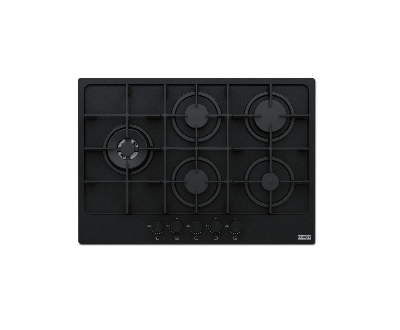 Die komplett in Schwarz gehaltene Gestaltung des Gaskochfeldes besticht durch eine hohe Funktionalität, wobei auch eine anziehende ästhetische Qualität erzielt wird.