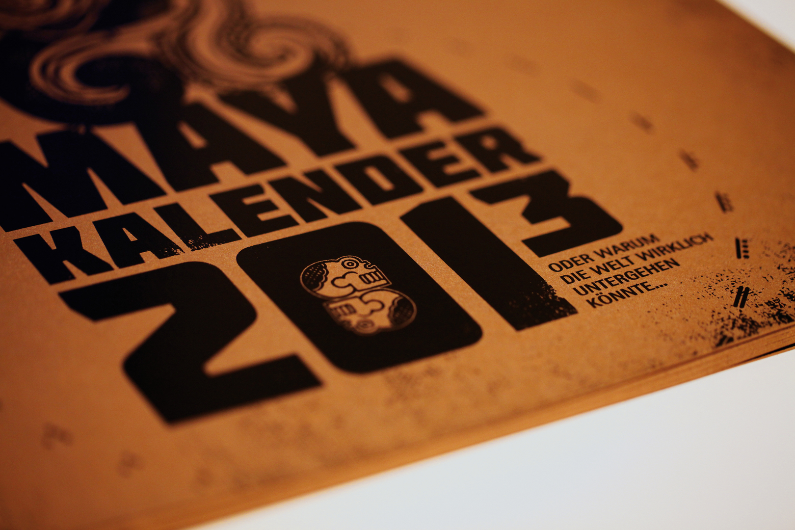 The fact that the ancient Maya calendar ended on 21 December 2012 triggered many visions of an impending end of the world, while for the Mayans the date simply marked the end of a time segment. The illustrations in the Maya Calendar 2013 take a look at the tremendous problems our world is facing and why the world could end indeed. The illustrations unite typical stylistic elements of classic Mayan mythology with those related to the featured challenges of our civilisation. The calendar contains both Arabic and Maya numerals.