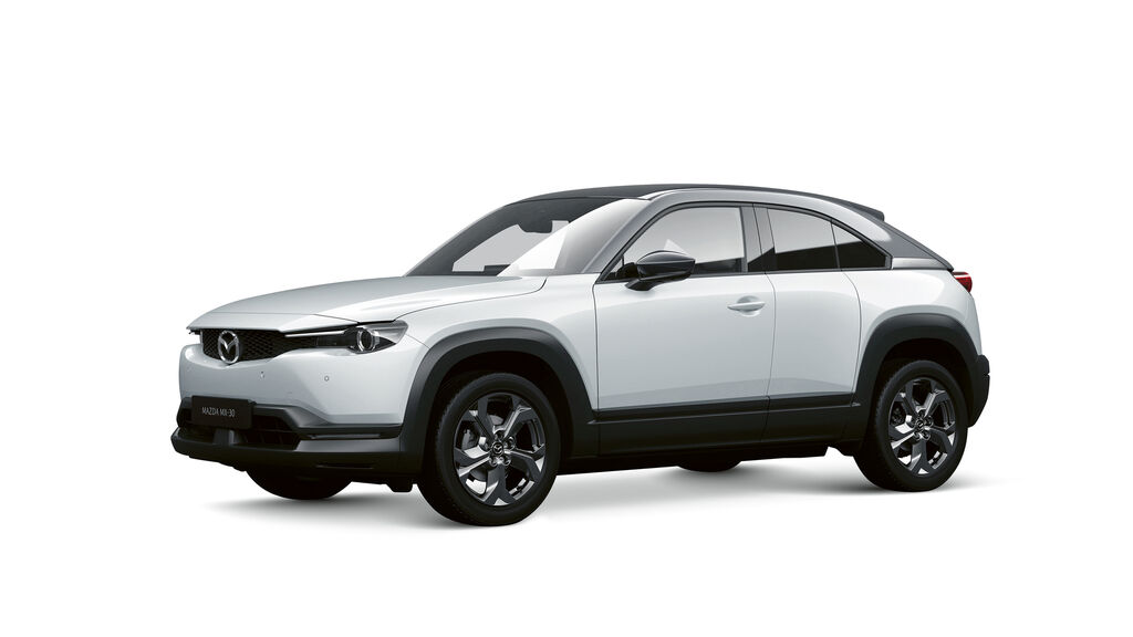 Das Exterieur des Mazda MX-30 besticht durch eine klare Linienführung und minimalistische Konturen. Wegweisend ist der Einsatz nachhaltiger Materialien im Inneren.