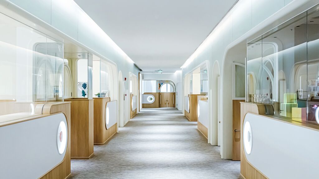 Die Förderung von Kindern im Alter von null bis sechs Jahren steht im Mittelpunkt des Universitas-Kindergartens MEIYI RKEC. Dafür kombiniert die Gestaltung ein menschenzentriertes Design mit einer internationalen Ausrichtung. Der Kindergarten umfasst modulare Funktionsräume und ist mit moderner Technologie ausgestattet. Natürlich anmutende, organisch geformte Holzdekore bestimmen das Bild im Inneren. Der zur Einrichtung dazugehörige Garten ist mit Spielgeräten, einem Sportplatz und einer Grünzone ausgestattet und bietet großzügigen Raum für Aktivitäten im Freien.