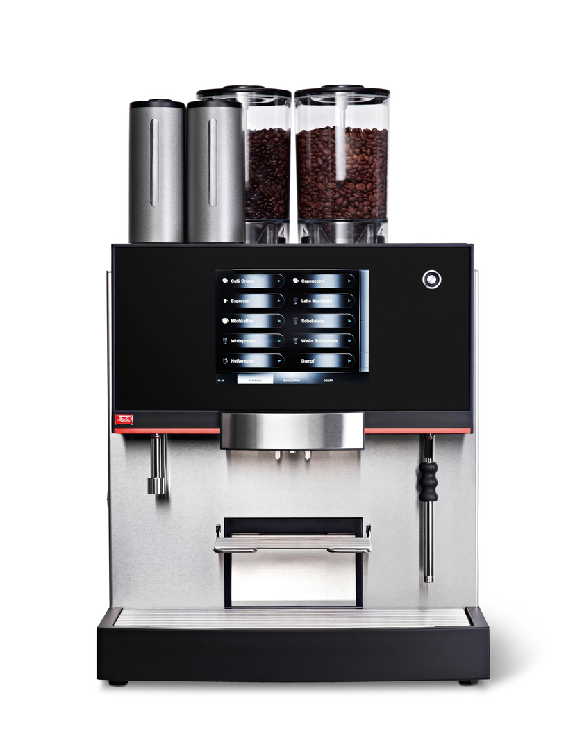 The Melitta bar-cube touch is a fully automatic coffee machine for professionals in the catering industry. It features a graphical user interface operated via a touchscreen. The interface is highly customisable and can be changed to fit the mood of the café where it is used. This easy-to-operate coffee machine is divided into two operating modes: a public one, for quick and easy selection of coffee specialties, and a sub-level for caterers and personnel, for individual recipe selection, maintenance and statistical evaluation. Thanks to well-structured navigation, users do not get lost, despite the machine’s functional density. All relevant states, parameters and operating steps are displayed on the 8.4-inch touchscreen display.