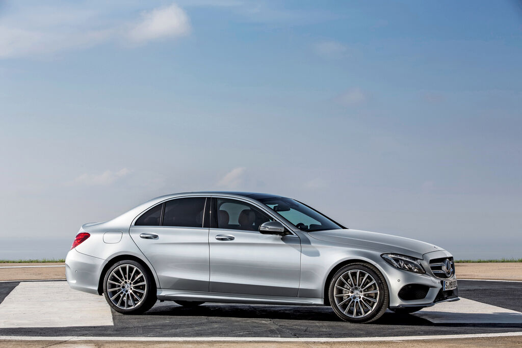 Eine lange Motorhaube, eine weit hinten sitzende Kabine sowie kurze Überhänge bestimmen die sinnlich-klare Formensprache der C-Klasse mit ihren klassischen, ausgewogenen Proportionen. Große Räder betonen das Heck und vermitteln elegante Sportlichkeit. Das Interieur überzeugt mit einer sportlich-fließend gestalteten Mittelkonsole mit runden Luftaustrittsdüsen, einem innovativen Touchpad in der Handauflage sowie einem Head-up-Display, das Informationen direkt ins Blickfeld des Fahrers in die Frontscheibe einblendet.
