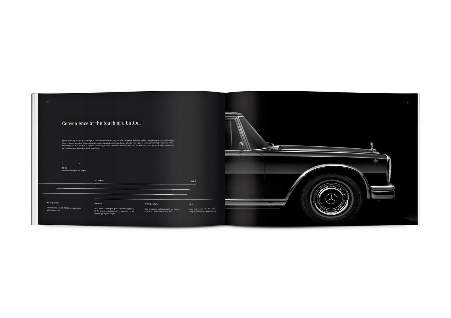Conceived as sales and inspirational literature, this book focuses on the fascination for the new Mercedes-Maybach S600 Pullman. In order to promote the car as a vehicle of new dimensions and the epitome of size, innovative images were created to convey an immediate experience and intensive sense of spaciousness. It therefore touches first on the history of this vehicle, with the exceptional length of the Pullman being turned into a consistent design element that retraces the line management in all models of this series. The subsequent presentation of the new models intends to facilitate a visionary view of the car’s development up to the present.