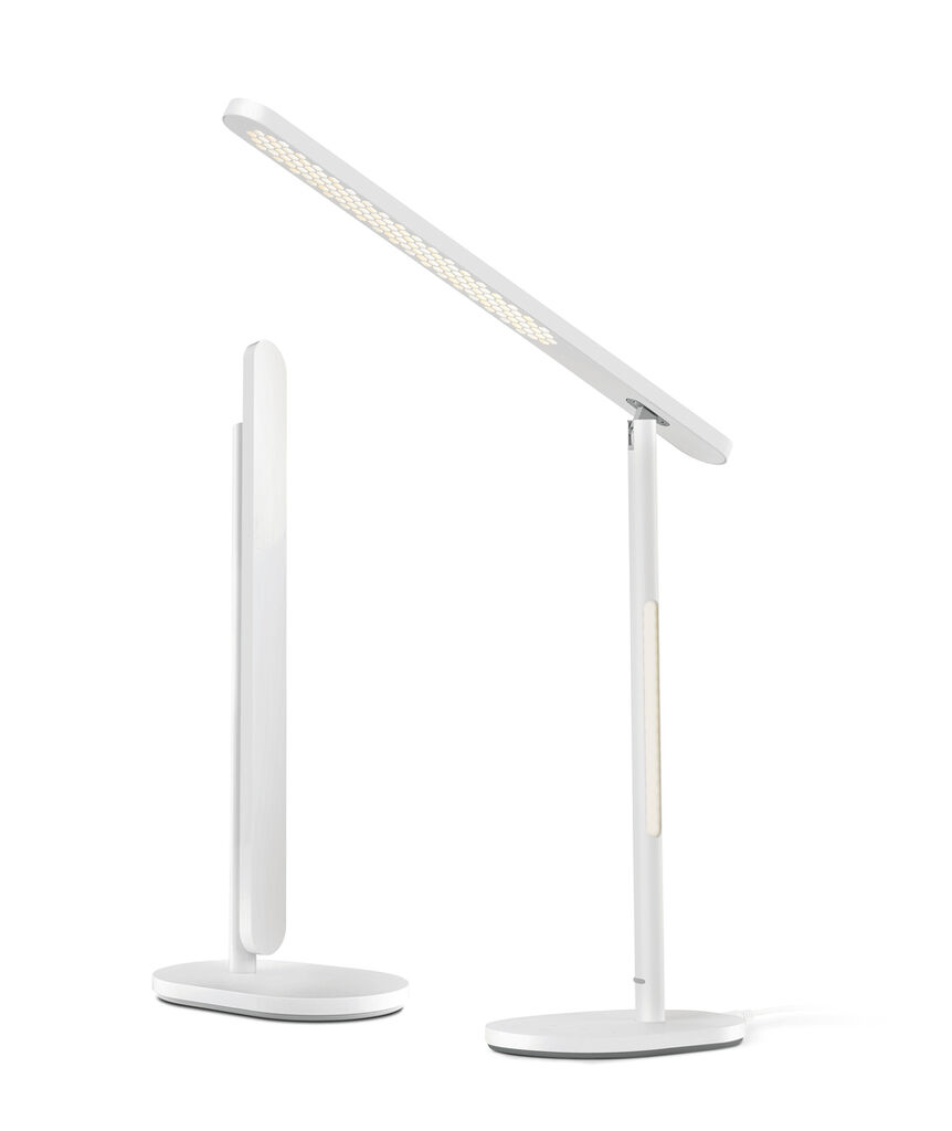 Um vor Blendungen zu schützen und dennoch eine hohe Lichtleistung zu bieten, wurde der LED-Reflektor dieser kostengünstigen Schreibtischleuchte in einer wabenförmigen Struktur gestaltet. Vier Beleuchtungsmodi erfüllen unterschiedliche Bedürfnisse und sind über eine Touch-Symbolleiste auf der Leuchtenfußabdeckung intuitiv aktivierbar. Die Leuchte kann zusammengeklappt werden und bietet in dieser Position eine dezente Hintergrundbeleuchtung, um einer Ermüdung der Augen entgegenzuwirken.