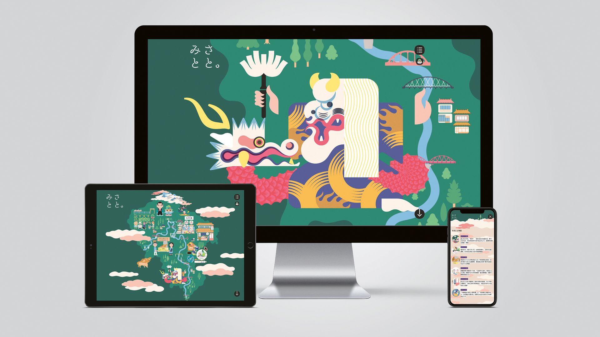 The objective of the relaunch project for the town of Misato was to communicate the benefits of this Japanese small town to its citizens and visitors in a creative manner. After looking around the town for motifs, the designers created illustrations of unusual sights. The colourful key visuals characterise a brand design that draws the attention of non-residents to the town and also makes locals proud. The pictures presented on the website and in the photo exhibition are freely available. In addition to the website and new business cards for employees of the town hall, several town newspapers and a town guide have been published.