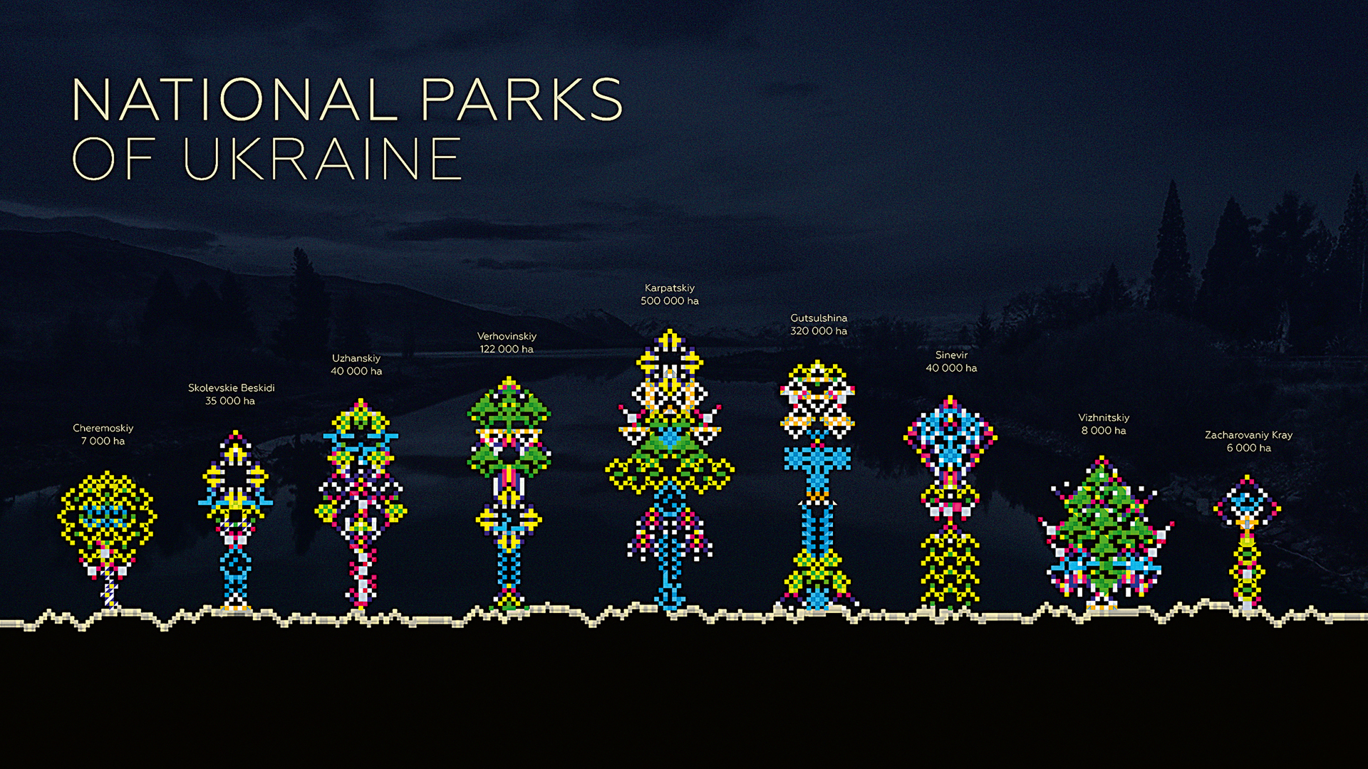 The idea of using embroidery designs in creating a visual identity for the 86 Ukrainian national parks is absolutely outstanding. The identity has thus emerged as a graphic superstructure that is immediately familiar to every fellow countryman and countrywoman. Comprising recognisable logos, icons and pictograms, it has an appearance that allows for highly versatile application and which is just as functionally convincing as it is aesthetically pleasing.