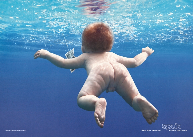 A surprising change of perspective lends this advertisement an exclusive and fascinating appeal. It presents the cover photo of Nirvana’s album “Nevermind”, but from a new perspective. Viewers get the impression that they are looking at a previously unpublished motif from the original photo series. With this photo, which was specifically created for this campaign and which reenacts the original scene down to the last detail, the image archive “spuk stock pictures” advertises its exclusive photo series. The brand claim of havingunseen images is thus given proof.